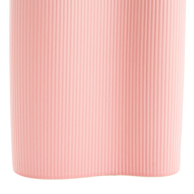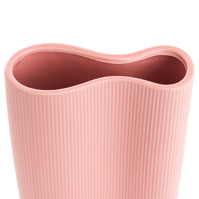 The diameter of the inside of the vase at its widest point measures 15.5cm. At the smaller end of this irregular 'figure 8' shape, the vase measures 4.2cm at its widest point. At the larger end of this 'figure 8', the vase measures 5.3cm at its widest point (interior measurements). The overall height of this vase is 23cm. Each vase is sold individually and is available in four other complementary colours.