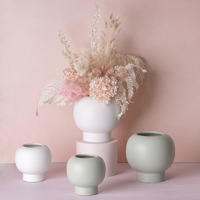 Our Ceramic Diara Fish Bowl in Sage has a flawless matte finish. This is the perfect base for modern flower arrangements. The bowl is waterproof, does not have any drainage holes and is painted the same colour both inside and out.