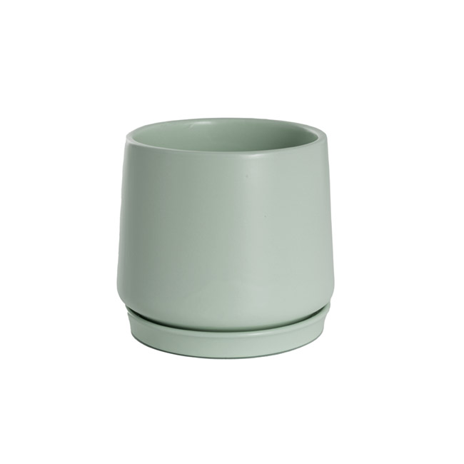 Measurements: Has a top opening diameter of 12.5cm. Base measures 15cm in diameter and 14cm in height (including plate & pot). Pot has an internal height of 11.5cm.