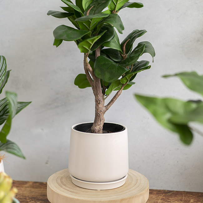 Measurements: Has a top opening diameter of 12.5cm. Base measures 15cm in diameter and 14cm in height (including plate & pot). Pot has an internal height of 11.5cm.
