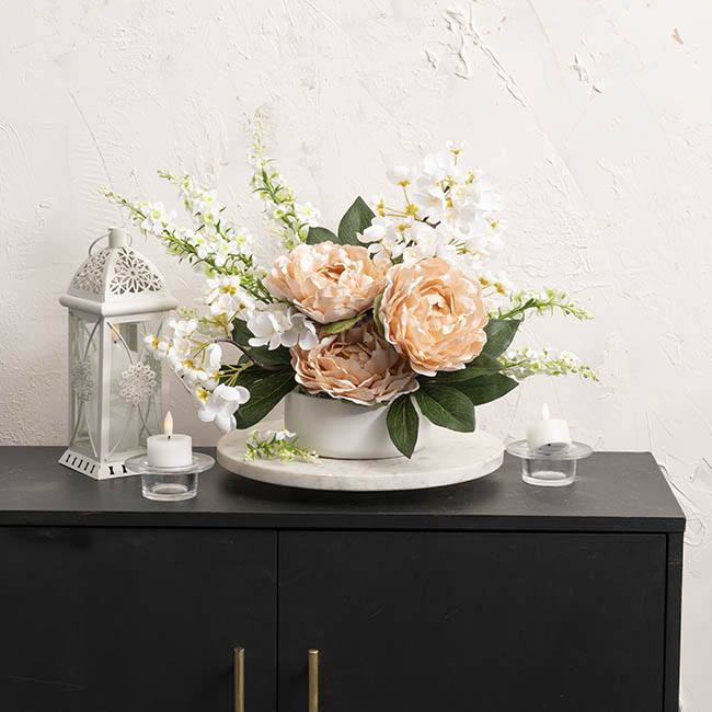 This bowl measures 15.3cm in diameter and 6.2cm tall. It is sold individually and can contain one brick of floral foam.