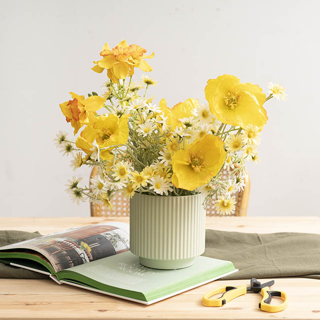 Sold individually, this vase measures 14cm in diameter and 14cm tall.