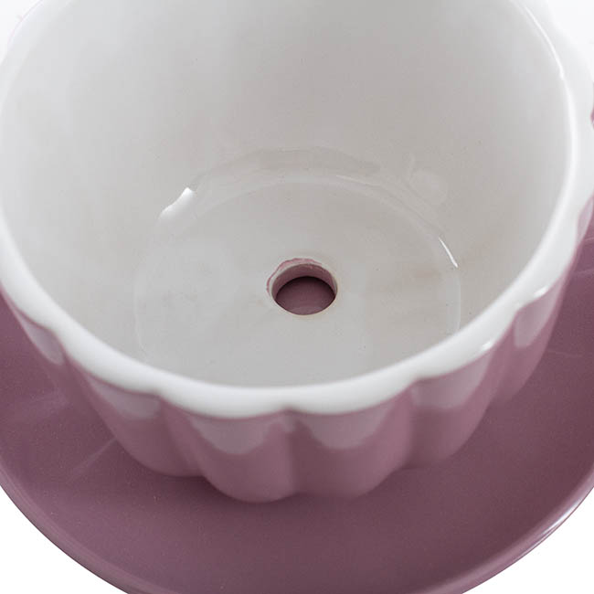 Please note: this is sold as one piece, with the cup fused to the plate. This fully glazed piece features a drainage hole. The opening measures 15cm in diameter and has an overall height of 10cm. This piece is sold individually.