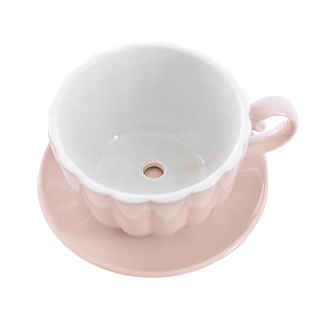 Please note: this is sold as one piece, with the cup fused to the plate. This fully glazed piece features a drainage hole. The opening measures 15cm in diameter and has an overall height of 10cm. This piece is sold individually.