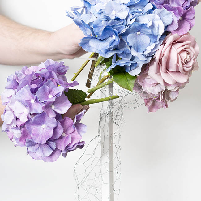 Rust-resistant for up to one year, this 24-gauge chicken wire is easy to cut, shape, and secure. This product is designed to facilitate floristry design in medium-sized projects, such as securing flowers to arbours, casket saddles, table centrepieces, and more.