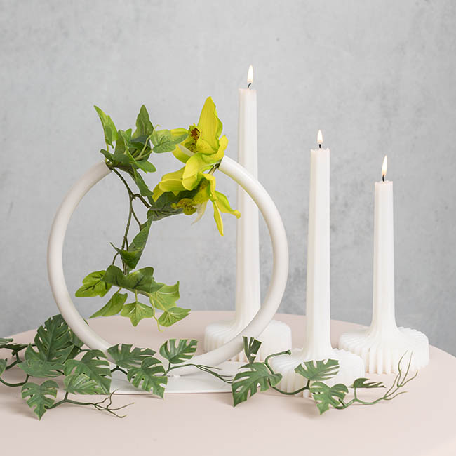 This vase has a 10cm wide and 20cm long base, for reinforced stability. The tube of this vase measures approximately 1.5cm in diameter. This vase measures 25cm tall.