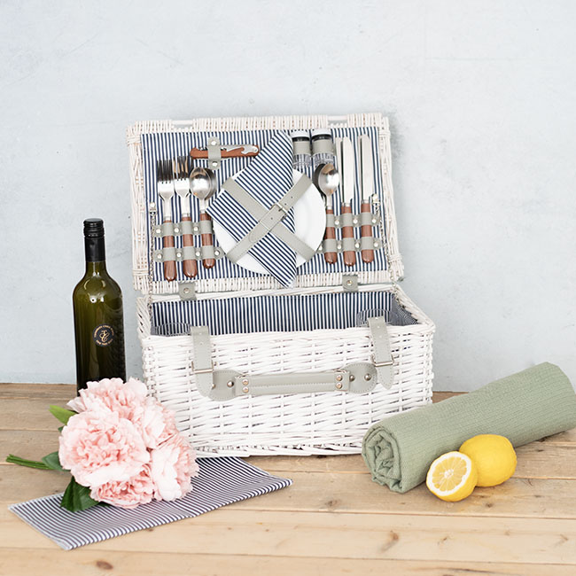 Classic 4 Person Picnic Basket Satin White (42x28x20cmH)