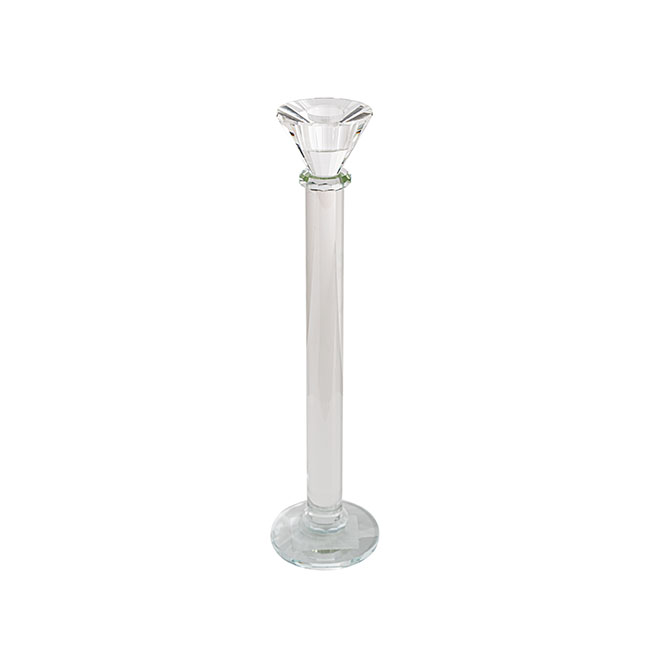 This candle holder's base measures 8cm in diameter and overall, it stands at 32cm tall. This candle holder is available in a smaller size to facilitate artful clustering of candles.