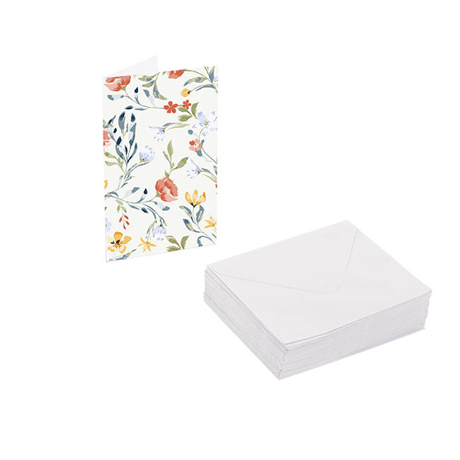 There are 25 folded cards per pack, along with 25 white envelopes. Sold as a complete pack of 25 cards and envelopes, the cards measure 6.5cm wide and 10cm tall when folded.