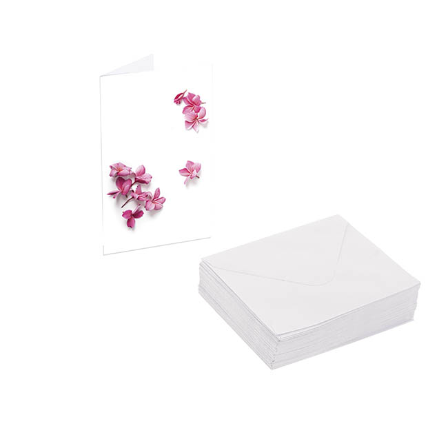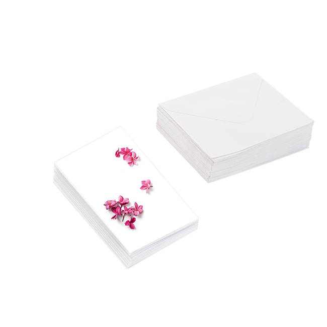 There are 25 folded cards per pack, along with 25 white envelopes. Sold as a complete pack of 25 cards and envelopes, the cards measure 6.5cm wide and 10cm tall when folded.