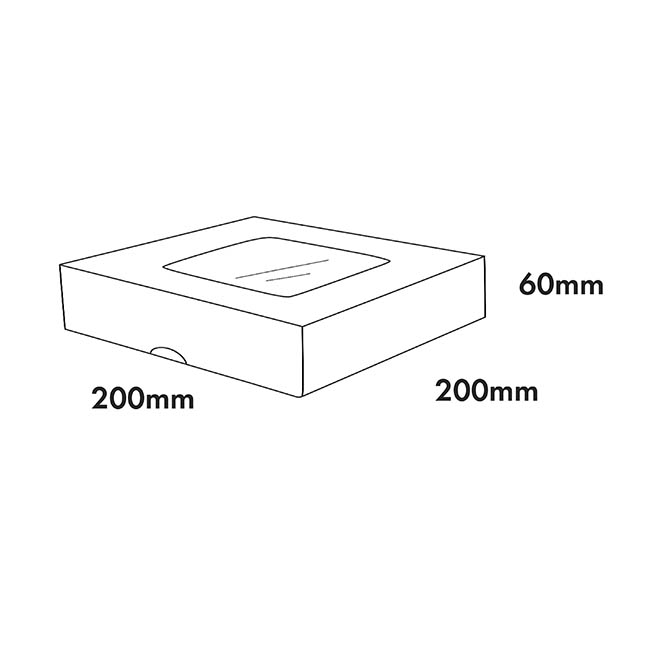 This window Pie Dessert Cookie box is perfect for displaying your baked pies, desserts, pastries or cookies/brownies/slices. Designed for one whole baked good or several smaller or pre-cut baked goods, this food grade white box with window is 20.5cm wide, 20.5cm deep and 6.4cm high (designed for up to 8inch/20cm pies).