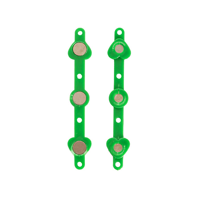 Each magnetic piece has a sturdy plastic frame with 3 magnets set into it. The long and thin plastic frame allows you to securely wire or tape your corsage into place. This is particularly faciliated by the has inbuilt holes, ideal for the threading of florist's wire.