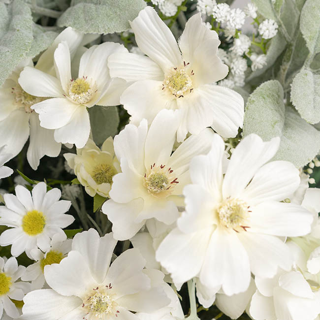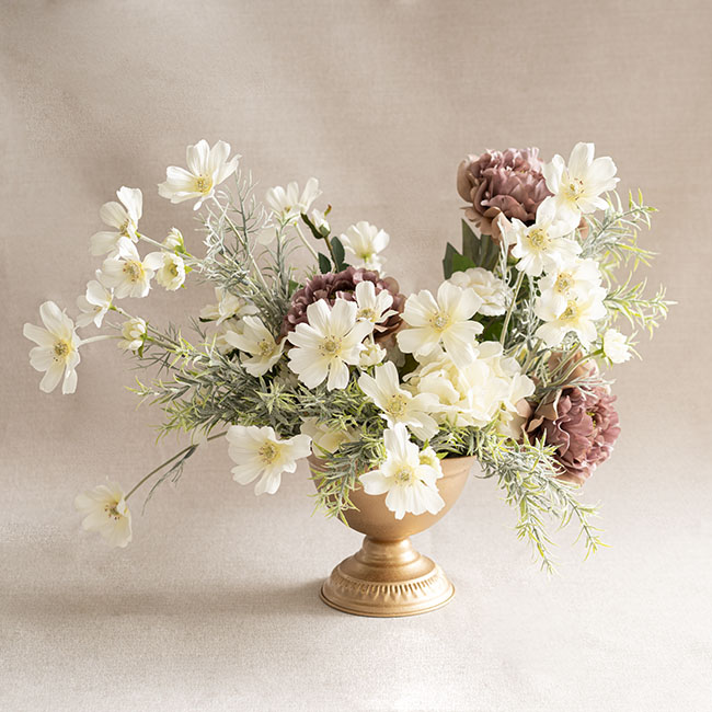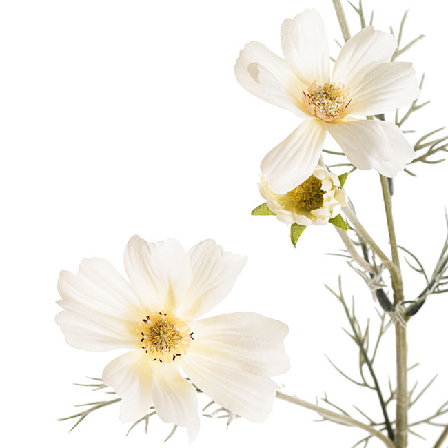 The Cosmos spray comes with 5 flower heads and it measures 62cm tall. Each of the flowers heads measure 6 to 8cm in diameter with the buds measuring 3cm. This pretty flower is ideal in flower arrangements.Colours: Cream Ivory