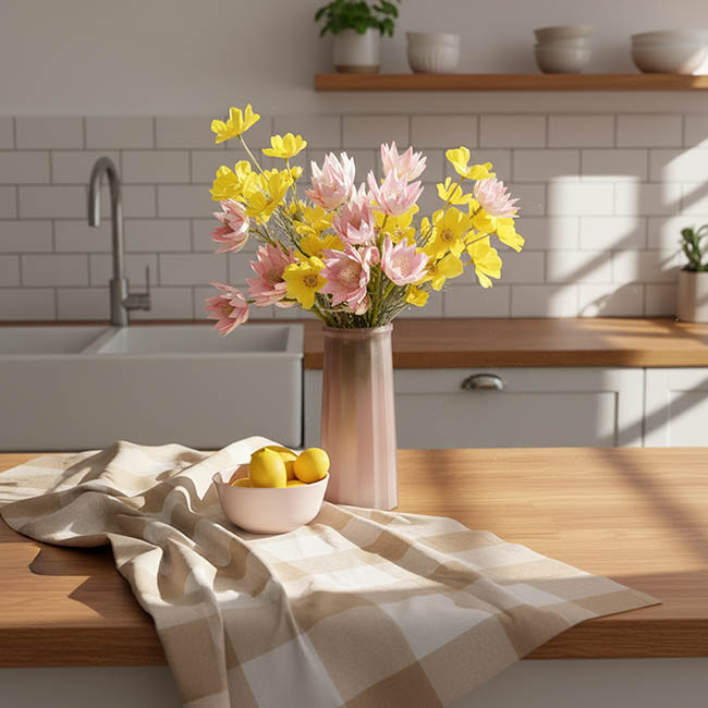 The Cosmos spray comes with 5 flower heads and it measures 62cm tall. Each of the flowers heads measure 6 to 8cm in diameter with the buds measuring 3cm. This pretty flower is ideal in flower arrangements.Colours: Yellow