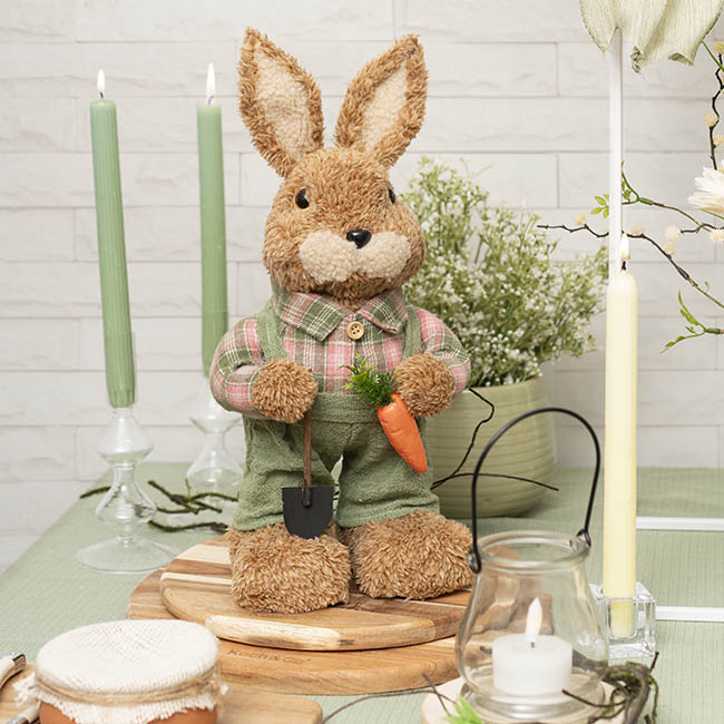 Country Male Bunny w Shovel & Carrot Green (38cmH)