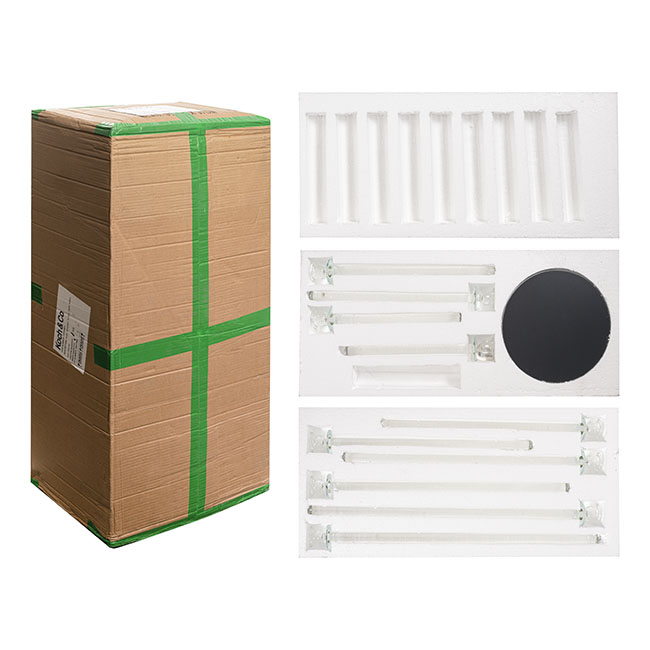 Please note, this candelabra can also be used without glass hurricane sleeves attached. Glass hurricane sleeves sit neatly on candle holders and replacement sleeves are available (SKU: 1101098CL). Each glass sleeve measures 6cm in diameter and 30cm tall. The tallest candle holders (without hurricane sleeves attached) measure 83cm tall. With hurricane sleeves attached, the candelabra measures 109cm at the tallest point. This candelabra accommodates 10 taper candles with a diameter of 2cm or less.