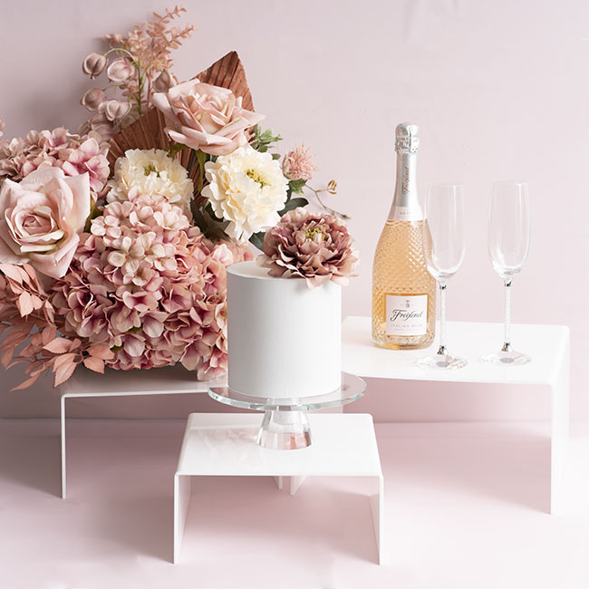 It measures 20cm in diameter and 6.5cm tall. This cake stand is also available in a larger size.