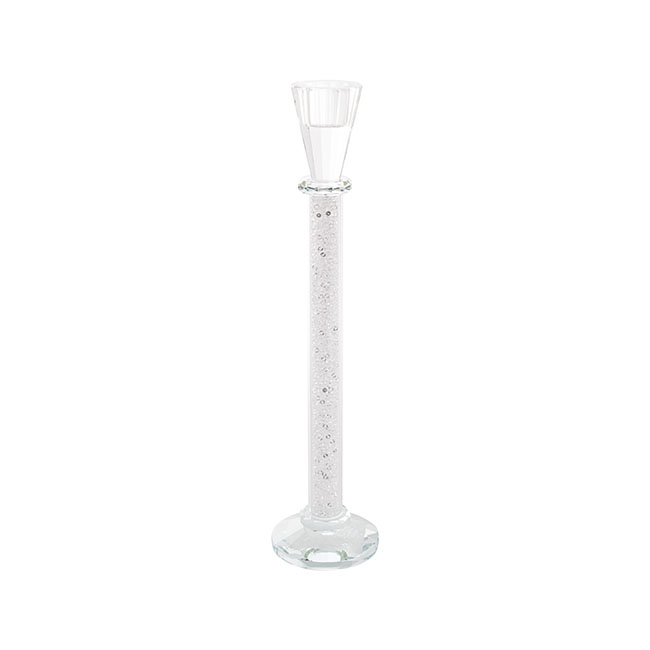 This dinner candle holder is compatible with dinner taper candles that measure up to 23mm across. This product is sold as a single item, requires no assembly, and has a base that measures 7cm in diameter and an overall height of 30cm.