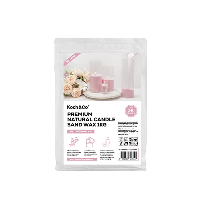 This product includes 40 x 6cm long cotton wicks and 1kg of candle sand.