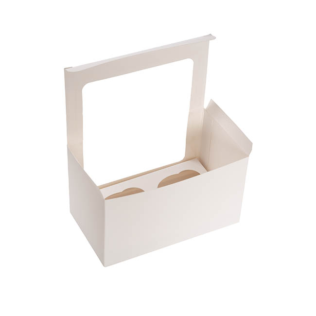 Cupcake Double Pastry Window Box White Pack 6(17.5x10x10cmH)