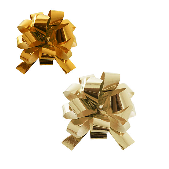 4 small pull bows 18mm x 8.75cm in metallic gold.