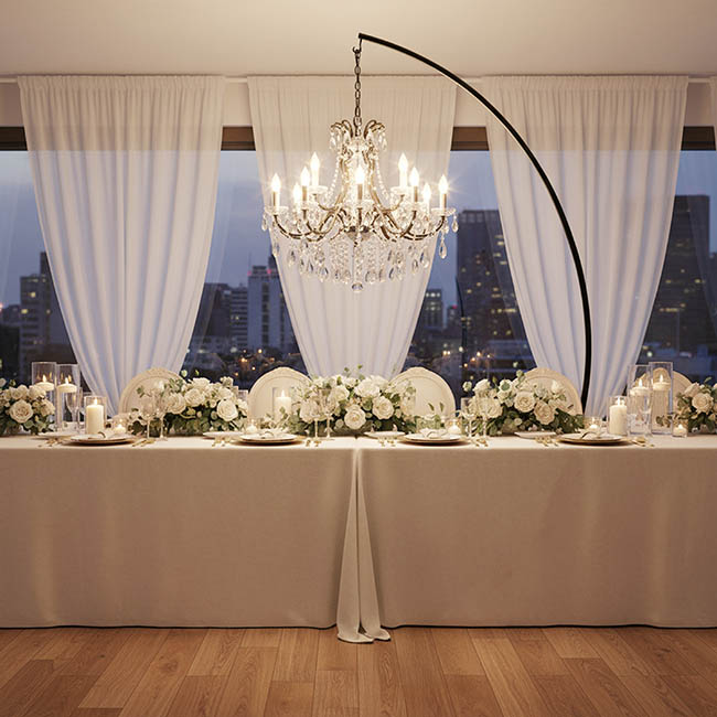 This sleek black metal curved frame stand is perfect for hanging chandeliers or decorative pieces, supporting up to 10kg with ease. Standing 250cm tall on a sturdy 60cm by 60cm base, the stand offers reliable stability, with the option to add extra weight bags if needed. Ideal for both events and home use, it’s important to check indoor ceiling height before use to ensure a safe and stylish display.