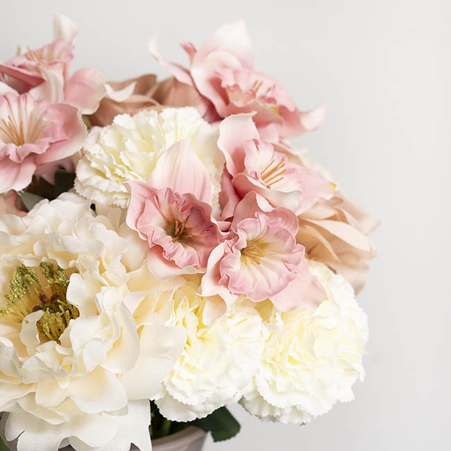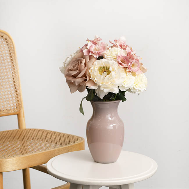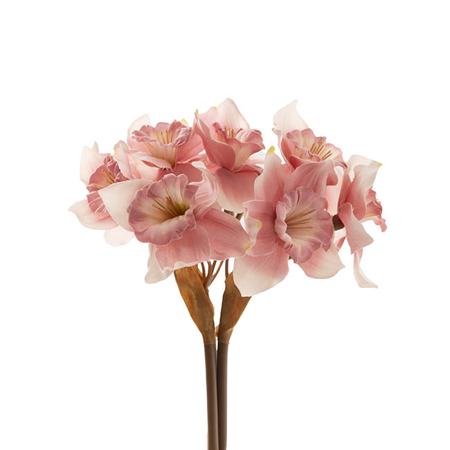Brighten any room with this charming bouquet of dusty pink daffodils. Standing 40cm tall, it features nine vibrant flower stems that bring a cheerful and elegant touch to your decor. Perfect for adding a burst of color and a touch of springtime elegance to any space.