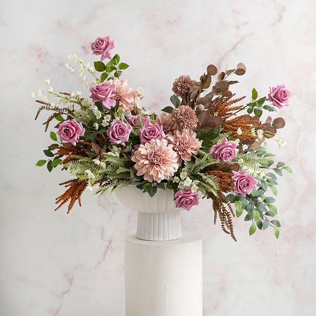 Whether displayed on its own in a tall vase or incorporated into larger floral arrangements, this artificial dahlia stem lends a fresh, airy feel to your space.