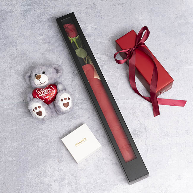 This rose box is suitable for a long stem rose or other single stemmed flower. In addition to a single rose, there is enough room to also include a small box of chocolates, jewellery box, or small teddy bear. This box is particularly well-suited to special occasions like Valentine's Day, Mother's Day, Engagements, proposals, and anniversarie