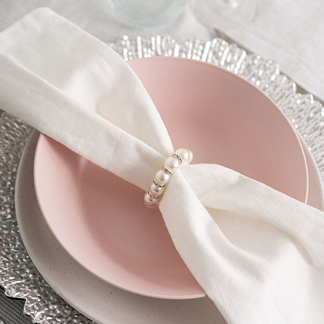 This napkin ring is available in a pack of six. This napkin ring measures 55mm in diameter, with an inner diameter of 35mm. Each pearl has a diameter of 10mm.