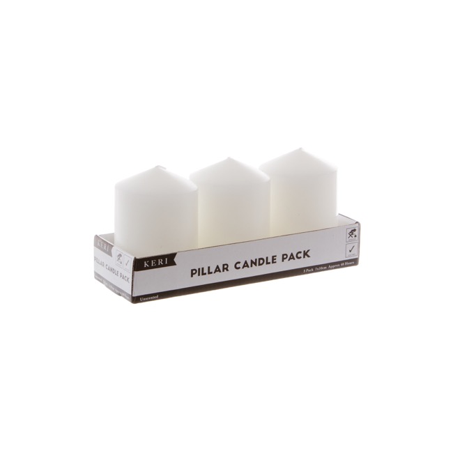 Featuring a 48hr burn time and a timeless and elegant appearance, this 3 pack pillar candle set is unscented and is perfect for any space. Each pack is shrink wrapped for easy storage and transport
