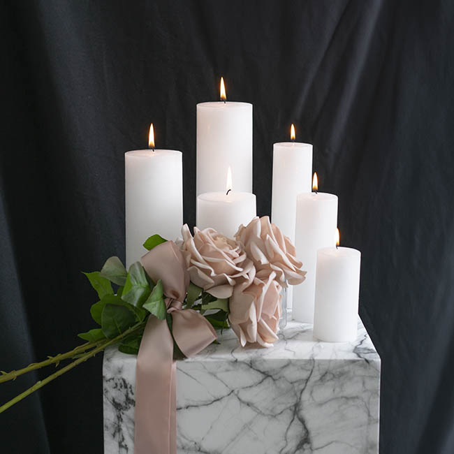 This candle measures 5cm in diameter and 15cm tall. It is sold individually and features a clean burning cotton wick.