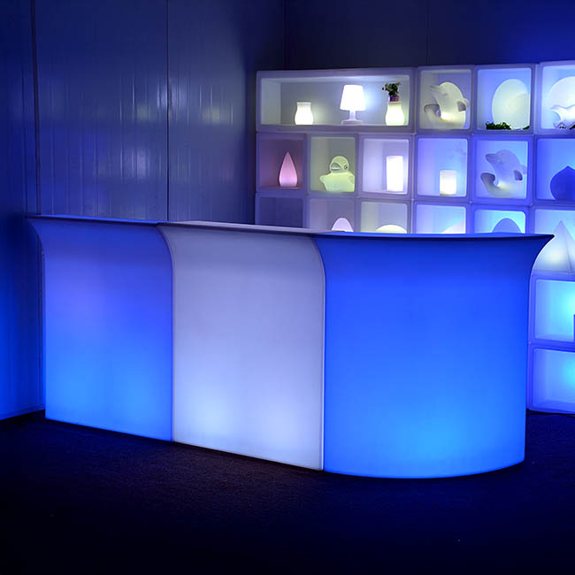 These LED bar counter corner section add a stylish, illuminated touch to any bar setup, measuring 80cm by 80cm and 110cm tall. Crafted from durable PE plastic with an IP54 waterproof rating, they feature 16 RGB colour-changing options and 4 lighting modes, all easily controlled via a 24-key remote with a 5m range. Designed for flexibility, they support both plug-in and rechargeable use, include a 1.5m charging cable, and provide up to 8–10 hours of vibrant lighting after a 4–5 hour charge with their built-in 4000mAh lithium battery.