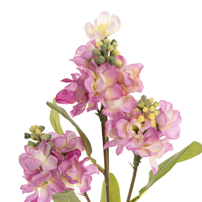 Add a vibrant burst of colour to your floral arrangements with this 3 head stock flower spray in striking fuchsia. Measuring 65cm tall, it features three beautifully detailed blooms that create height, fullness, and visual impact in any vase or bouquet.