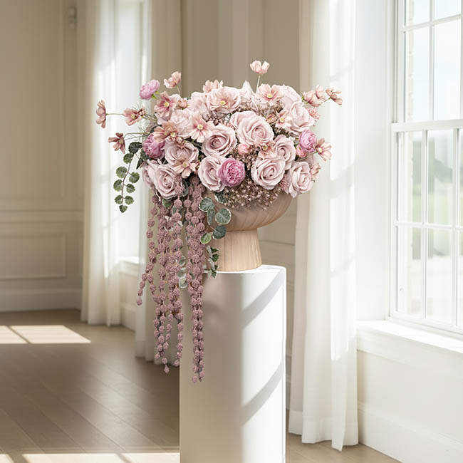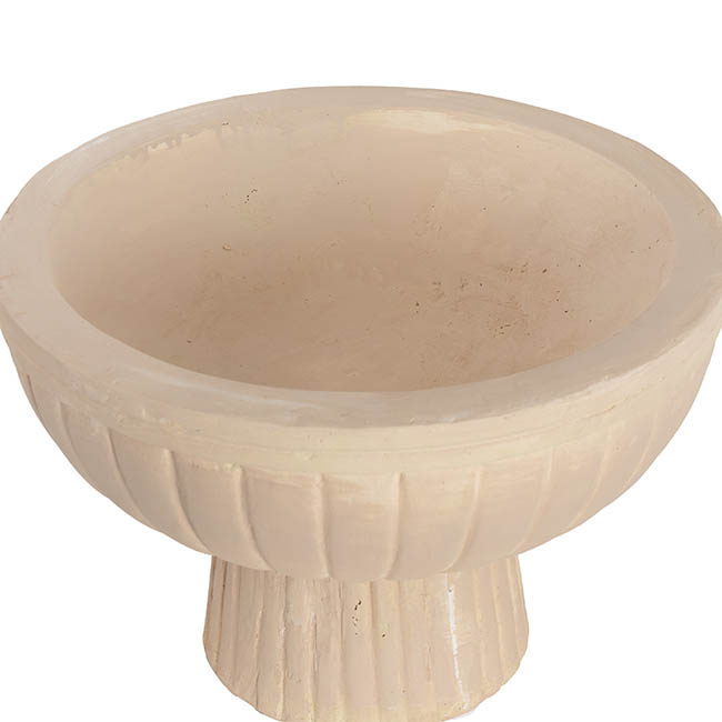 This compote stands 25cm tall and has a base diameter of 19cm. It also features a top outer diameter of 39cm and an inner diameter of 34cm. The inner depth of this planter is 14cm. This item is sold individually.