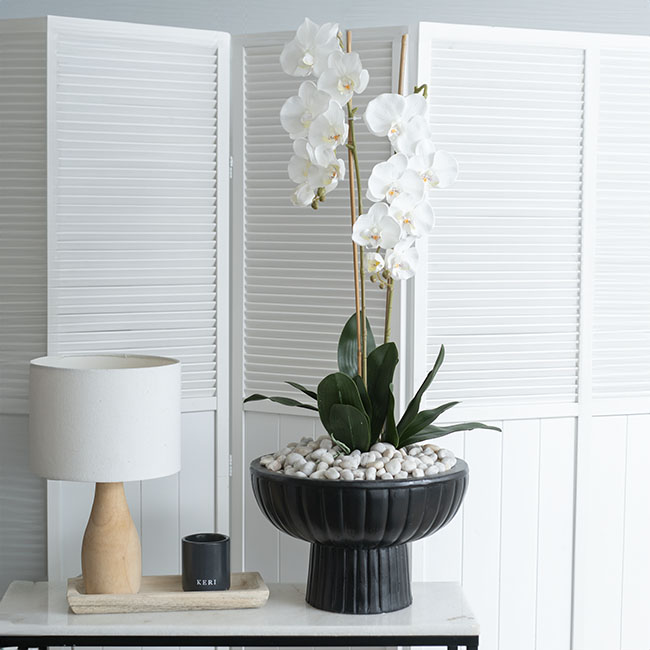 This compote stands 25cm tall and has a base diameter of 19cm. It also features a top outer diameter of 39cm and an inner diameter of 34cm. The inner depth of this planter is 14cm. This item is sold individually.