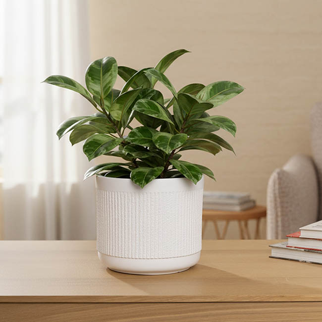This white ribbed design fibreglass planter features a clean, modern look that complements any indoor or outdoor space. Measuring 34cm in diameter and 29cm tall, it’s lightweight yet durable, making it easy to style while standing up to everyday use. The subtle ribbed texture adds visual interest, perfect for showcasing greenery, floral arrangements, or decorative plants.
