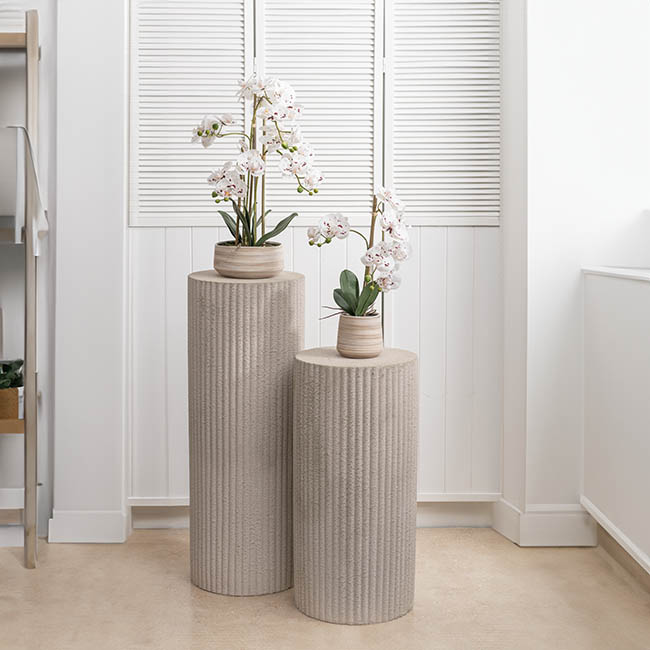 This plinth measures 33cm in diameter, 71cm in height, and can bear a maximum weight of 30kg. It weighs 12kg.