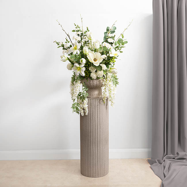 This plinth measures 33cm in diameter, 91cm in height, and can bear a maximum weight of 30kg. It weighs 14kg.