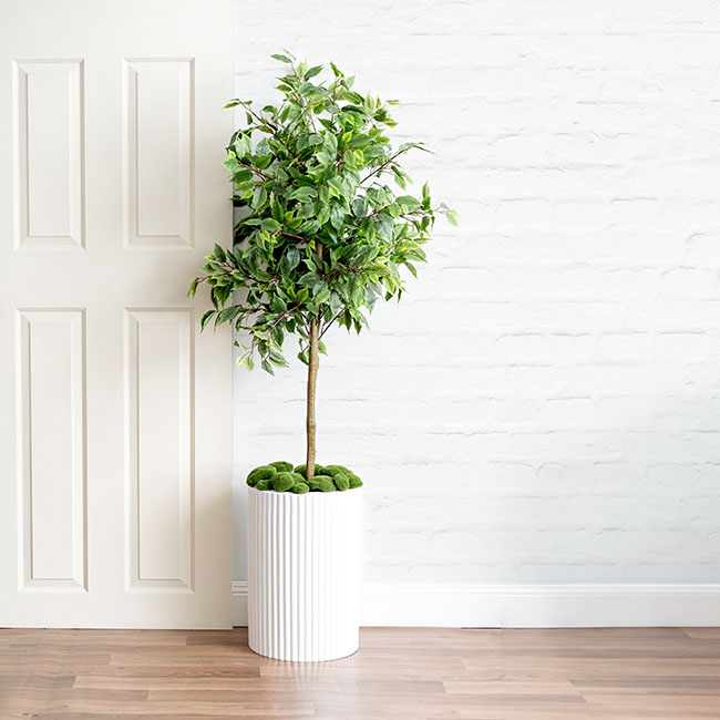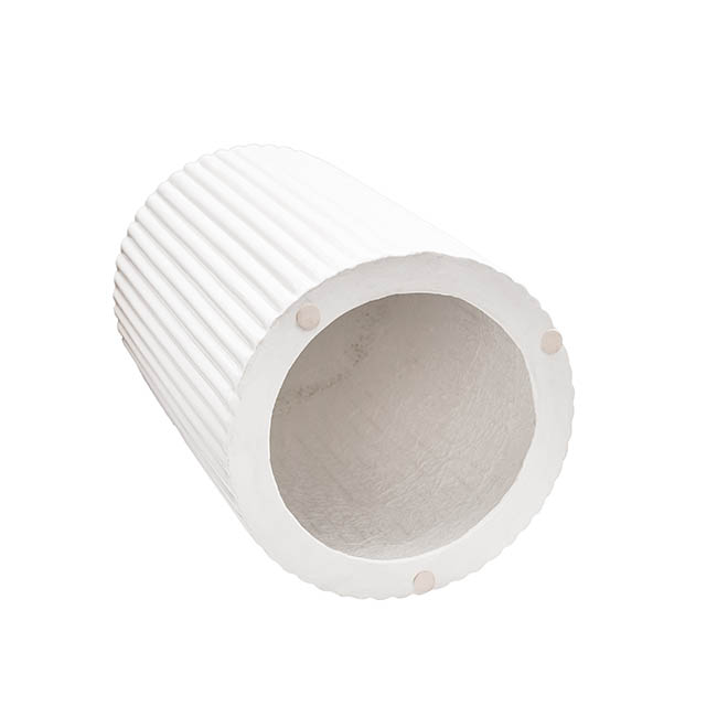 Fibreglass Ripple Plinth Round Matte White (32cmDx50cmH)