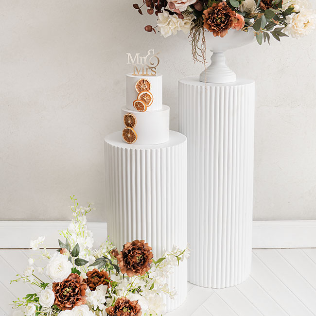 This plinth measures 33cm in diameter, 71cm in height, and can bear a maximum weight of 30kg. This product is also available in a taller variety (SKU: 1402052OW) and gloss varieties.