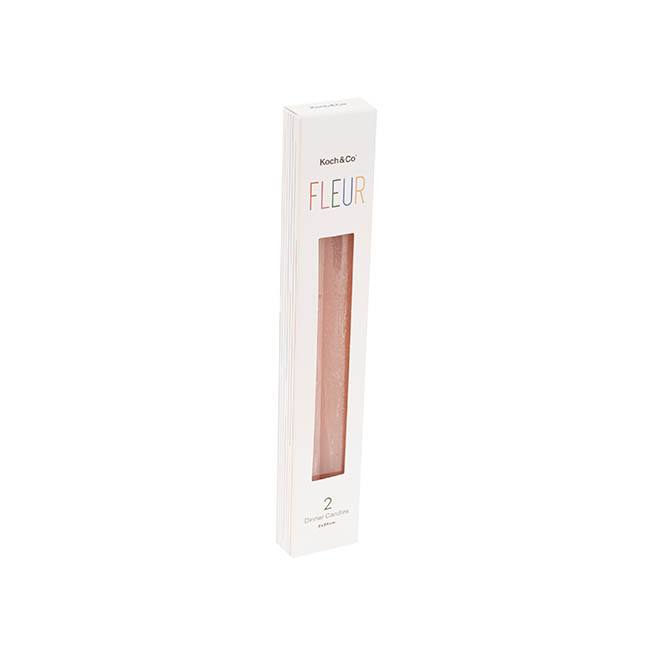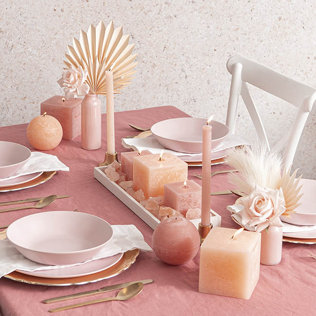 Our Fleur Dinner Candle in Peach is an frosted-finish dinner candle that will bring interest to your event and home decor. Pair with other frosted-finish candles from our Fleur range for a complementary cluster. This candle is not dripless and is available in packs of 2.