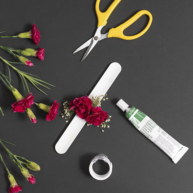 Commonly used to secure stems into foam or to attach elements in corsages and arrangements, this cold glue provides reliable structural support as an alternative to wiring or taping.