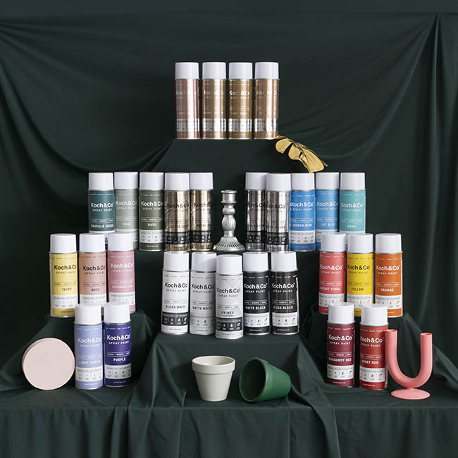 As self-priming paints, you can apply our extensive range of colours and finishes with ease to fresh, dried, preserved, and artificial flowers and foliage as well as wet or dry floral foam. Suitable for several hard-to-paint surfaces, our Floral & Craft Design Spray Paints range is gentle yet versatile enough to also apply to pottery, polystyrene, baskets, ceramic, glass, ribbon, paper, wood, ABS plastic, metal, and other paintable surfaces.