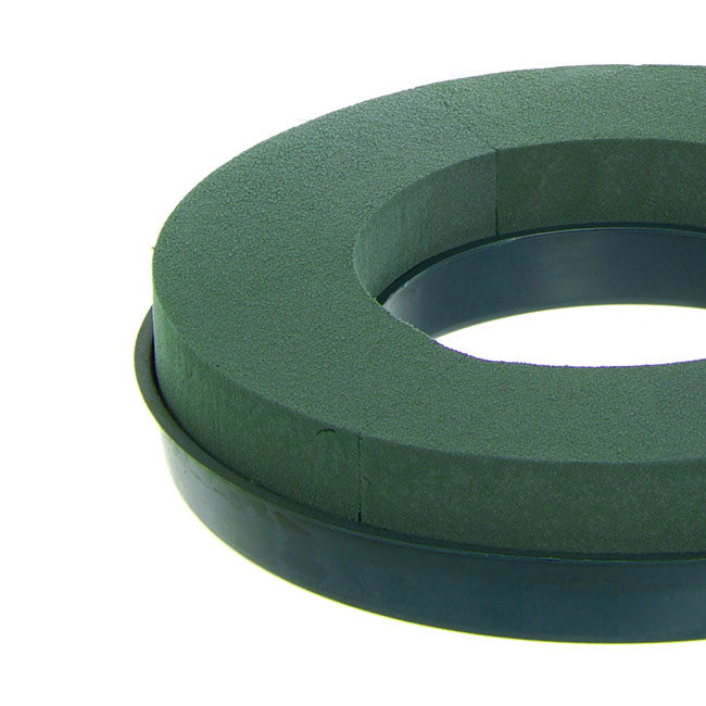 Strass floral foam wreath rings are 5cm of thick wet floral foam shaped as a wreath ring bonded to strong plastic moulded frame. The plastic base has anti-slip rubber feet and a small plastic lip to support foliage and decorative ribbon. The plastic backing creates a reservoir of water and is waterproofing. Plastic base wreath rings are suitable for making table and Christmas decorations as well as funeral tributes. Two rings are shrink wrapped together for better transport. Sold separately and same as Oasis Naylor Base Article number: 4511, Size External 25cm and Internal 13cm. For all your Oasis, Strass, or other floral foam questions please see our related resources below.