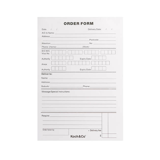 Florist Order Pad with Koch Co Logo (148x210mm) 100 sheets