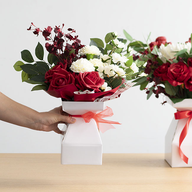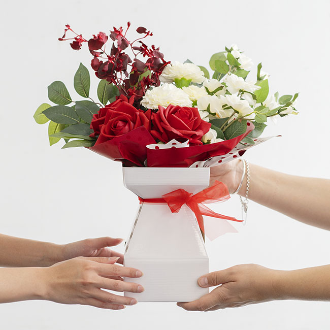 Designed with a flat base, these pods offer a stable packaging solution that aids in transportation of bouquets. They also offer easy, vase-less display of flowers. Recipients will no longer need to scramble for a vase if they receive an arrangement away from home, at the office or in hospital.
