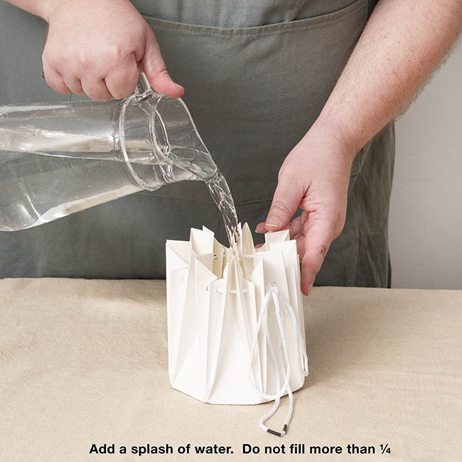 The pod can be used with a splash of water, get it fresh wrap, wet or dry floral foam. Do not overfill. Fill with water no more than one-quarter.