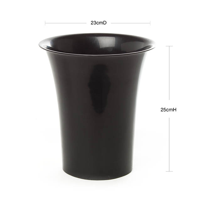 Mainly used for displaying flower bouquets, this plastic flower vase is very functional. Often used by florists to deliver their flowers in water. Will hold approximately 4.5L of water by itself, or 3.5L of water with flowers. Suits short flower bouquets up to 45cm long. Base diameter is 14cmD.