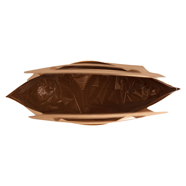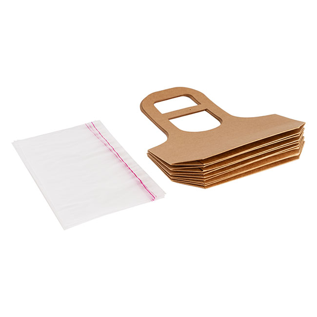 Internal measurements of this bag measure approximately 11cm deep at the top, 9.8cm deep at the base, 29cm wide at the top, 21cm wide at the base, and approximately 18.2cm tall in the middle, and 16.2cm tall at each end. The lower window in the handle for flowers to poke through measures 13.5cm tall and up to 10.5cm wide. This product is available in packs of five, also in white, and in a smaller size
